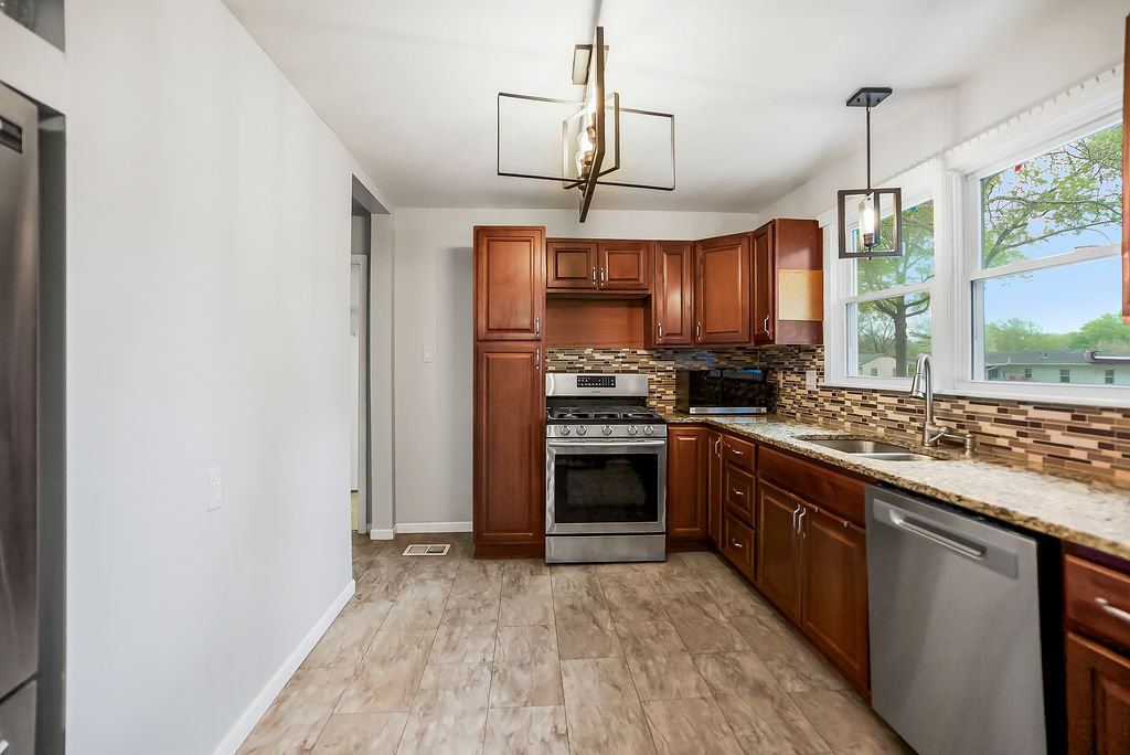 From the kitchen, step down to the finished basement featuring a rec area and a large open space, ready for your vision.